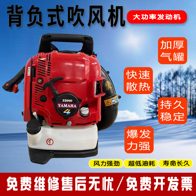 背负式吹风机是修公路吹灰尘和吹雪,吹雪厚度达到15公分以上,铁路上吹沙子,莱大栅溥膜上和露天的变压器上吹雪公园内吹落叶。